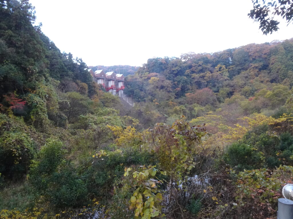 ダムの直下付近、ふれあいの里側からはダム本体は見えない