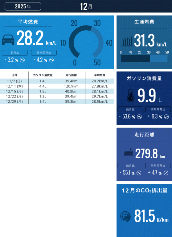 2025年12月 月間燃費:28.2km/L