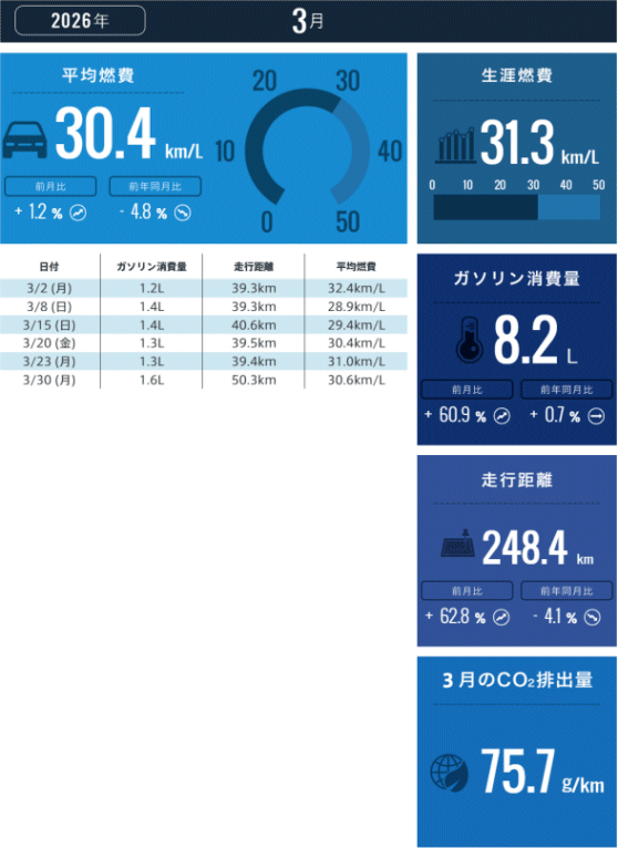 タイヤを新品に交換してから2200㎞程しか走行していないので、タイヤが馴染んであたりが着くまでは燃費は期待できないかな・・・気温が10℃以下での走行が多いのも影響・・・
